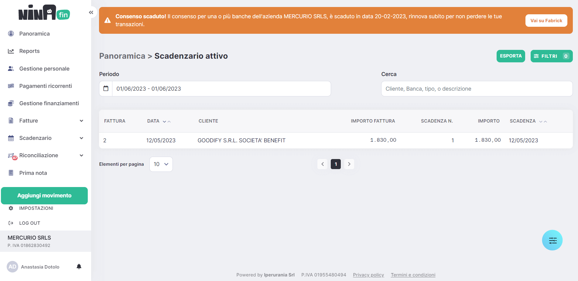 NinaFin comprende uno scadenzario con funzionalità avanzate.