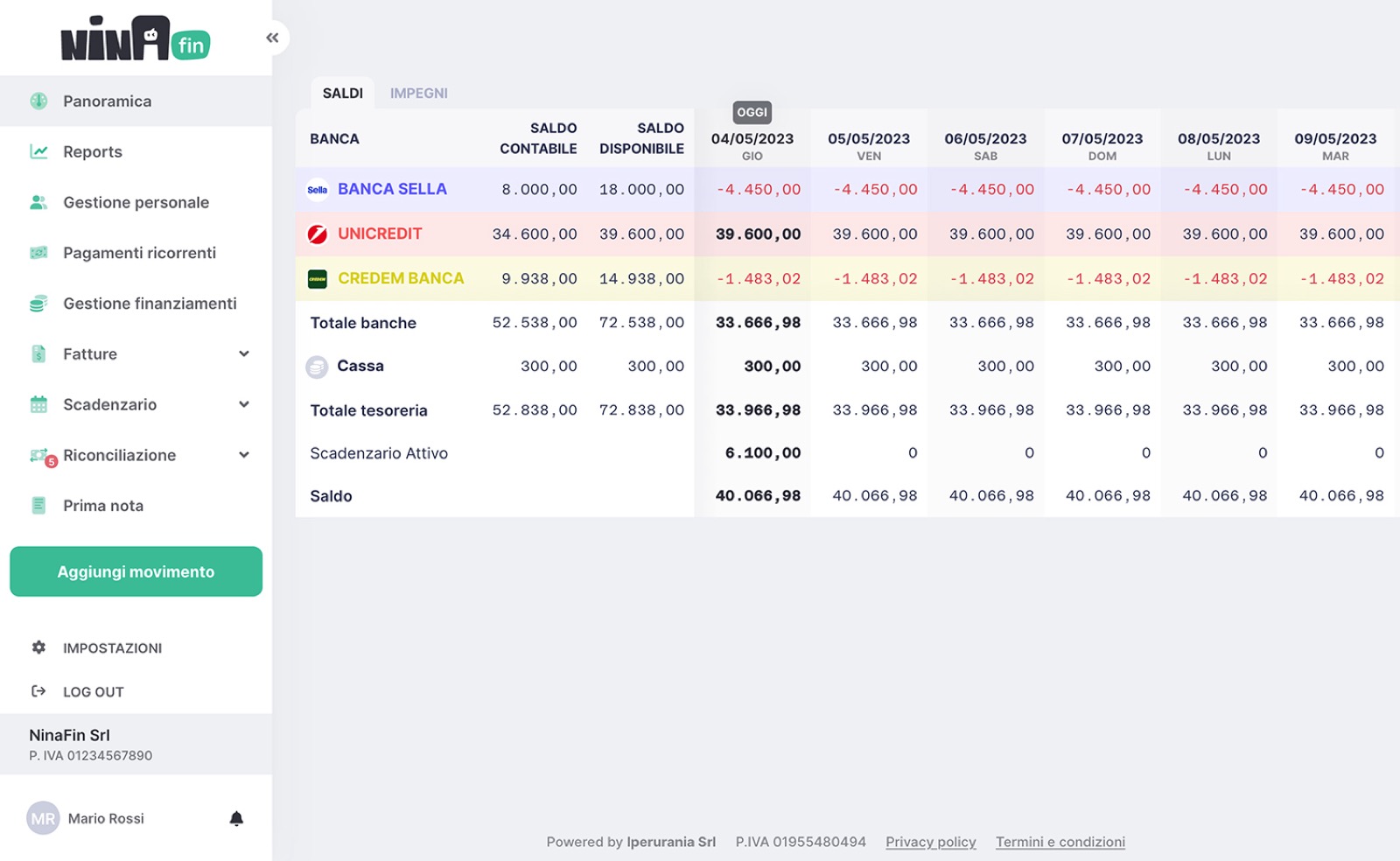 Grazie alle tecnologie dell'Open Banking, grazie alla possibilità di acquisire automaticamente le fatture elettroniche dal cassetto fiscale dell'Agenzia delle Entrate e grazie al metodo più che sperimentato di rappresentare la finanza dell'azienda sono riuscito a creare un'applicazione web, NinaFin. Uno strumento creato per ottimizzare la gestione della tesoreria e del credito operativo che permette, senza la necessità di alcun data entry, di gestire al meglio la liquidità.